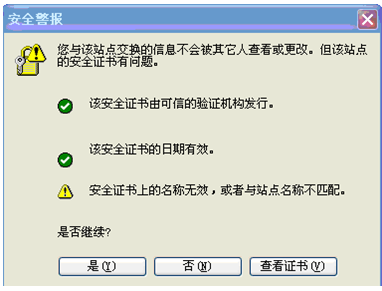 出現(xiàn)“安全警報”提示: