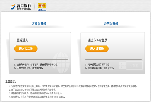 營口銀行個人網(wǎng)上銀行專業(yè)版提供賬戶管理、轉(zhuǎn)賬匯款、自助繳費、儲蓄理財、投資理財、自助簽約、客戶服務(wù)等功能。您可以選擇相應(yīng)的菜單后點擊需要操作的子菜單進(jìn)行操作。